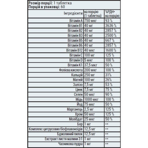 · 37,5 мкг вітаміну К1;