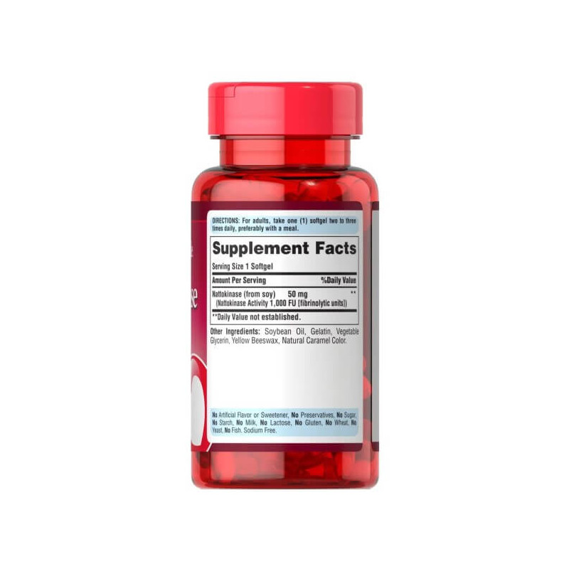 Nattokinase від американського виробника Puritan's Pride – активна монодобавка, єдиною речовиною, що діє, у складі якої є наттокіназа. Цей нутрієнт є сильним ферментом класу системних ензимів природного походження. Його одержують із японських соєвих бобів Натто. У цьому ферменті міститься велика кількість протеази, а також 275 корисних амінокислот, які безпосередньо беруть участь у життєдіяльності організму.