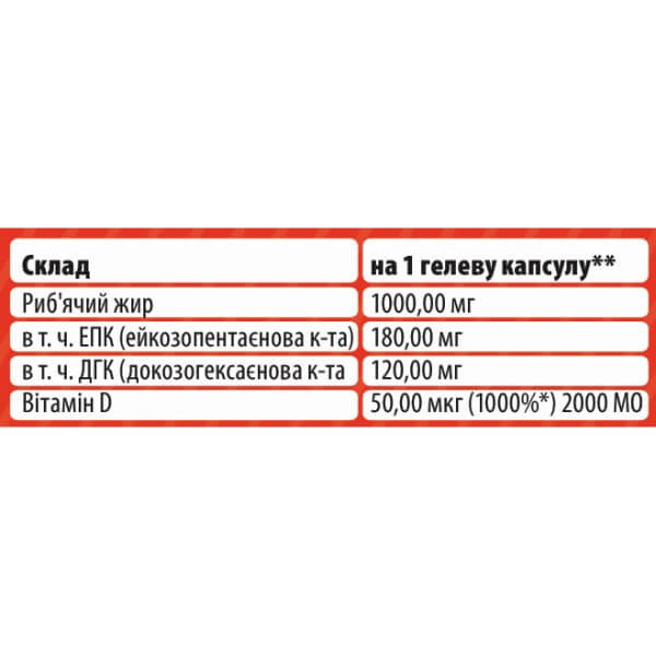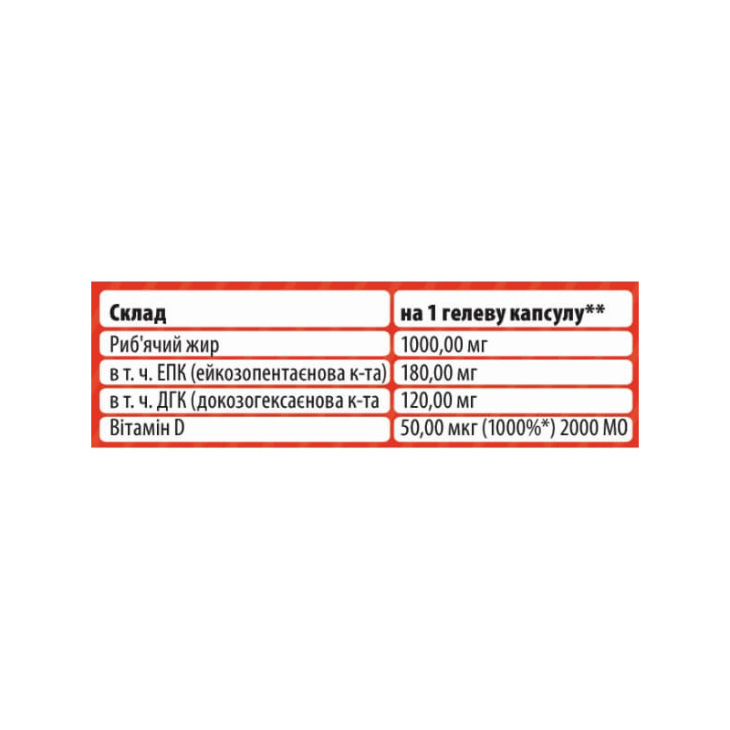 Omega 3 + D3 Sporter містить такі інгредієнти:
