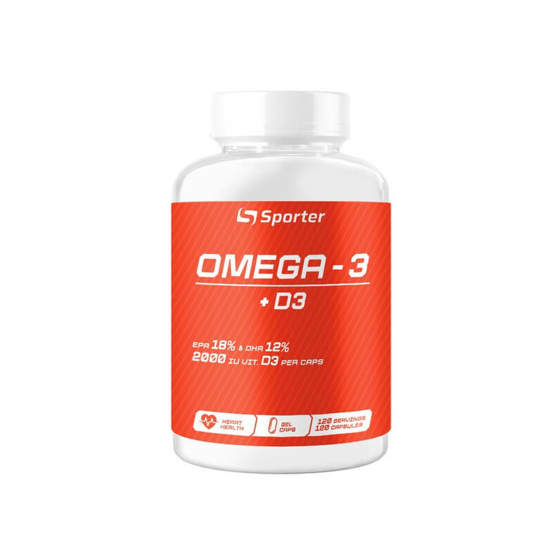 Omega 3 + D3 Sporter - ідеальний вибір для спортсменів та людей, які ведуть активний спосіб життя. Цей продукт забезпечує оптимальне співвідношення Омега-3 жирних кислот та вітаміну D3, яке допомагає підтримувати здоров'я серця та суглобів, зміцнює імунну систему, поліпшує настрій та допомагає в боротьбі з втомою.