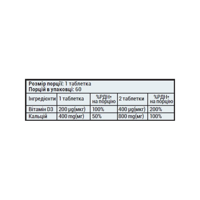 Цей препарат містить 400 мг кальцію та 10 мкг вітаміну D3 у кожній таблетці. Кальцій відомий своїми корисними властивостями для здоров'я кісток та м'язів, тоді як вітамін D3 допомагає організму засвоювати кальцій більш ефективно.