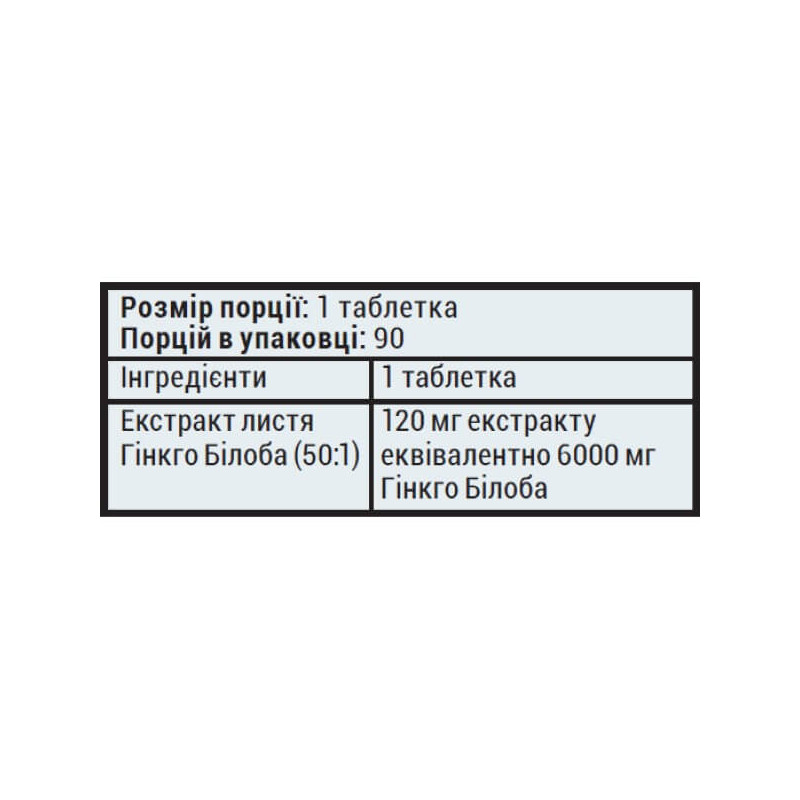 Кожна порція, 1 таблетка, Ginkgo Biloba 6000 мг Sporter містить:
