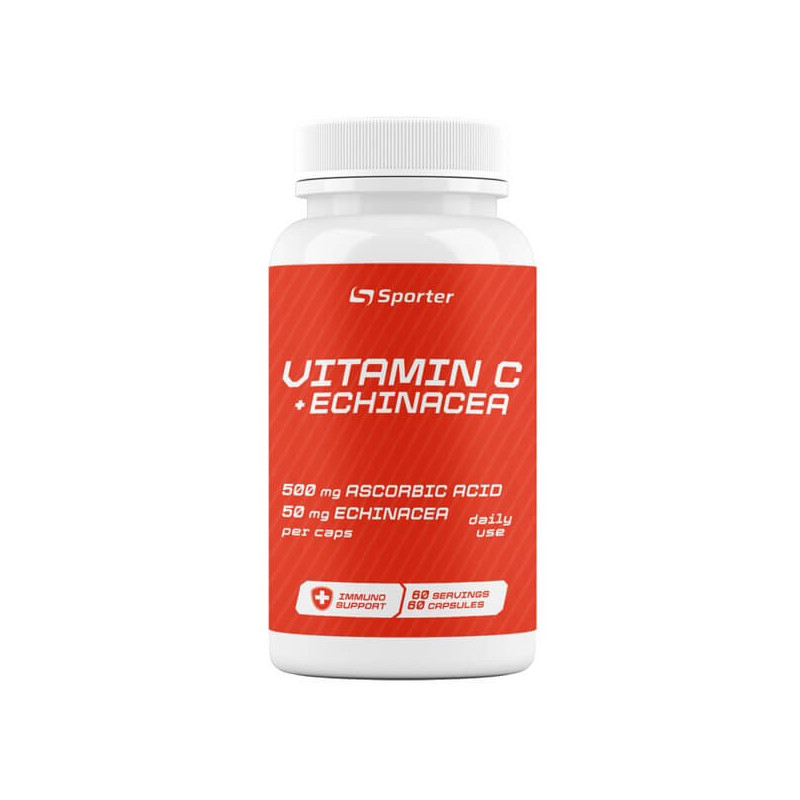 Вітамін С + Ехінацея Sporter містить 60 капсул і призначений для тих, хто займається спортом та хоче підтримати своє здоров'я та імунну систему.