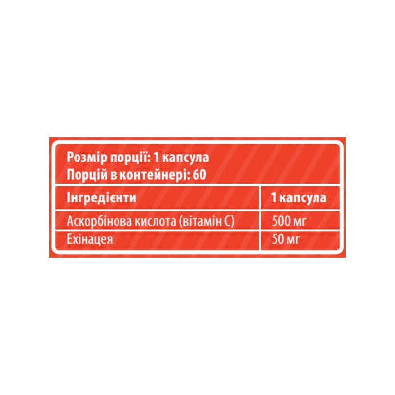 Склад однієї порції (2 капсули) Vitamin C + Echinacea Sporter наступний: