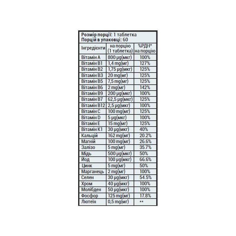 У кожній таблетці дієтичної добавки Vitmins від Sporter міститься: