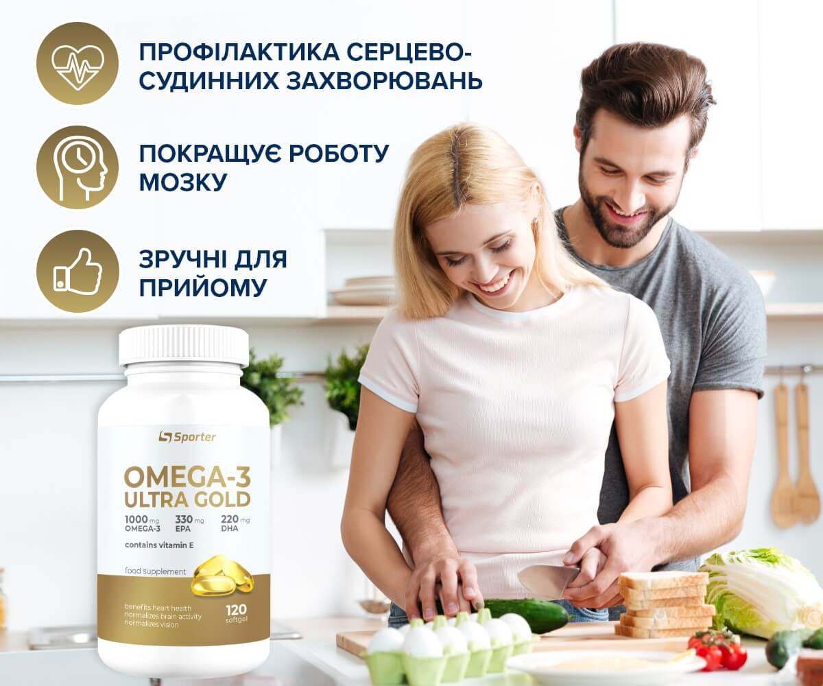 Потрапляючи в організм людини, харчова добавка Omega-3 Ultra Gold від Sporter: