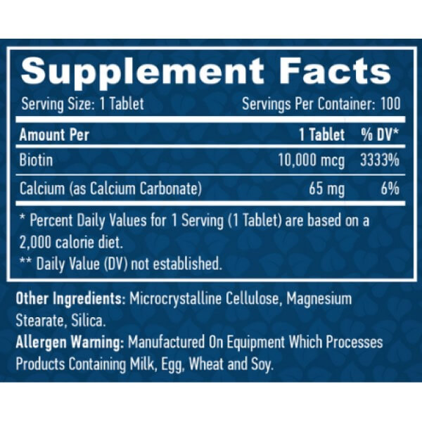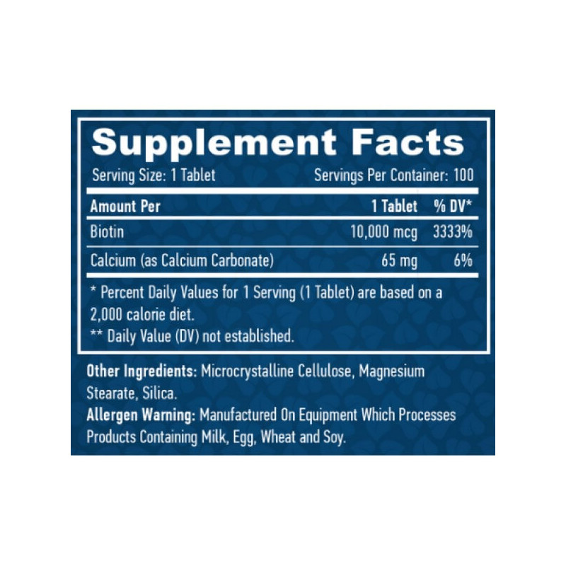 До складу кожної таблетки біоактивної добавки Biotin Maximum Strength від Haya Labs входить: