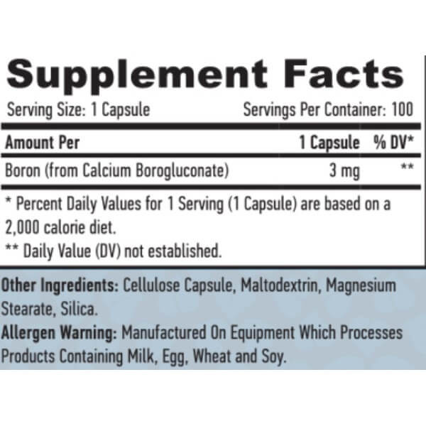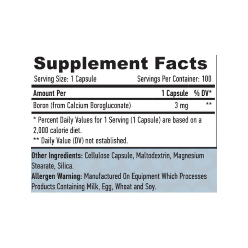 Boron від популярного бренду із США Haya Labs – натуральний мінерал бор у формі хелату, яка вважається однією з найбільш засвоюваних організмом. Цей нутрієнт людина отримує з харчовими продуктами – деякими крупами, бобовими, абрикосами, яблуками, буряками, морквою. Однак незбалансоване харчування нерідко стає причиною хронічного дефіциту бору в організмі, тим більше що з віком його потрібно все більше. Виправити ситуацію здатна харчова добавка із мінеральним бором від Haya Labs.