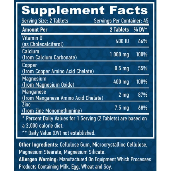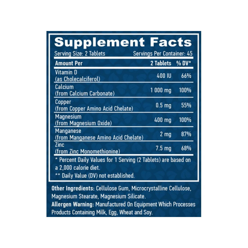 У порції Calcium Magnesium & Zinc with Vitamin D від Haya Labs з 2 таблеток міститься: