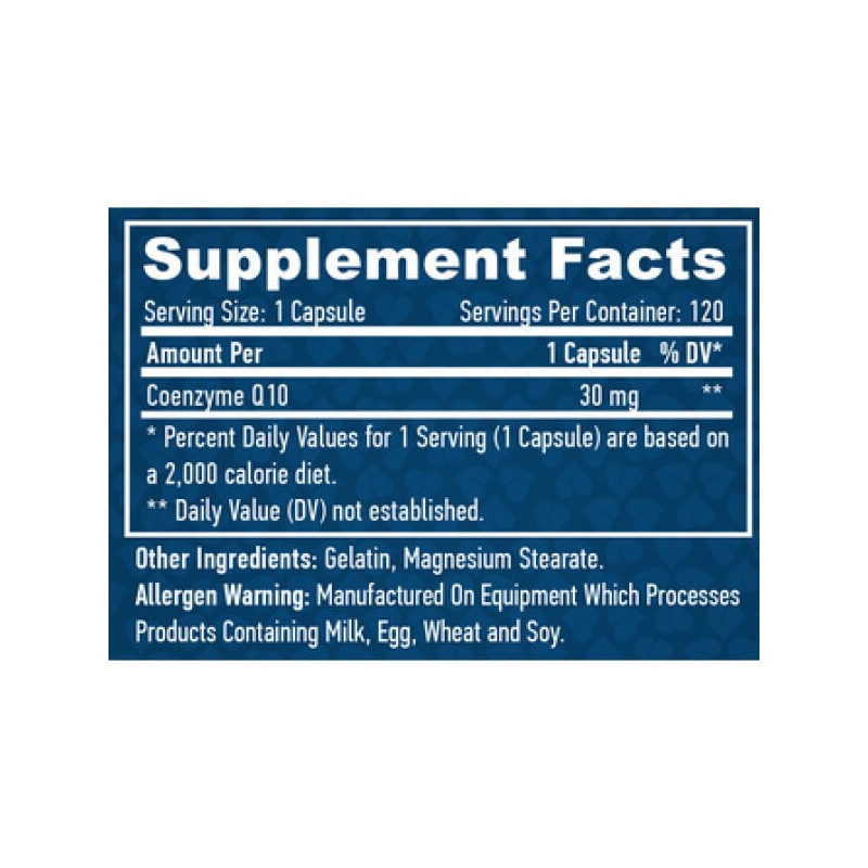 У кожній капсулі харчової добавки CO-Q10 від Haya Labs міститься: