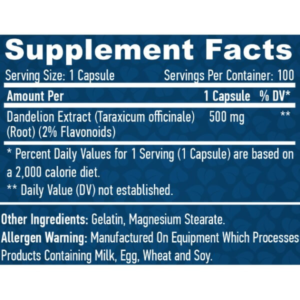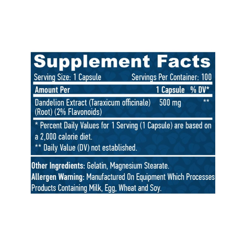 У кожній желатиновій капсулі харчової добавки Dandelion Root Extract від Haya Labs міститься: