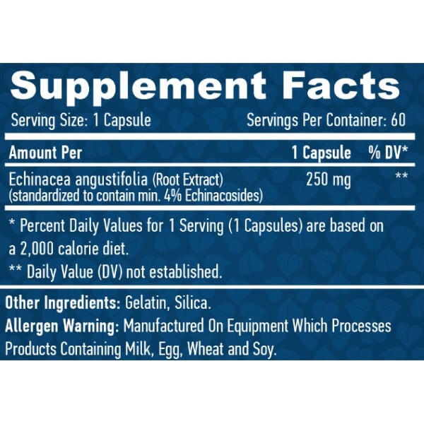 Echinacea від виробника БАДів із США Haya Labs – екстракт кореня ехінацеї вузьколистої, рослини, яка завдяки доведеним лікувальним властивостям широко застосовується як у народній, так і в офіційній медицині. Його унікальність обумовлена ​​багатим нутрієнтним складом – у ньому присутні полісахариди, ехінозиди, алкіламіди, інулін, бетаїн, а також калій, кальцій, срібло, мідь, сірка, цинк, селен, марганець та низка інших мінералів.