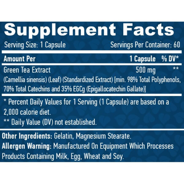 У кожній желатиновій капсулі Green Tea від Haya Labs міститься: