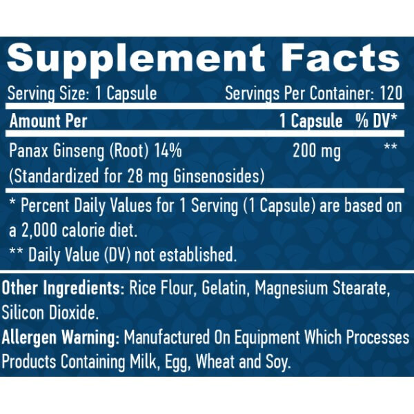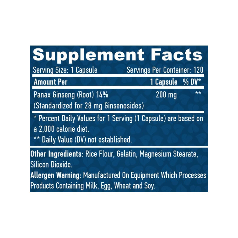 До складу кожної капсули Panax Ginseng від Haya Labs входить: