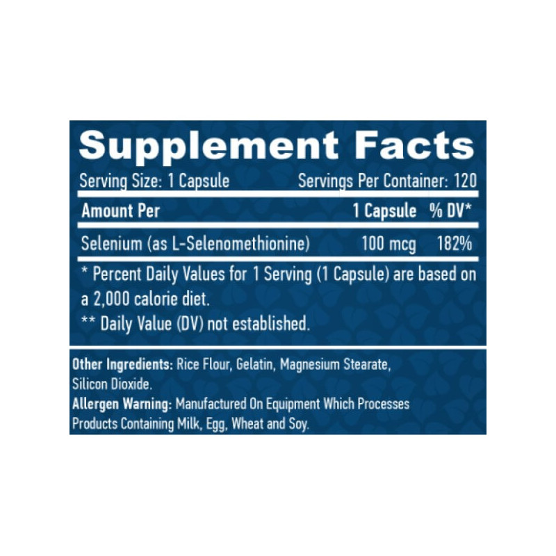 Цей мікроелемент відіграє значну роль життєдіяльності організму. Якщо у вашому харчовому раціоні недостатньо сирів, сиру, яєць, червоних сортів риби, злаків та інших продуктів, багатих на селен, врятувати становище допоможе даний збалансований продукт. Він пропонується у зручній для прийому формі желатинових капсул, які розчиняються безпосередньо в кишечнику, забезпечуючи максимальну засвоюваність мінералу.