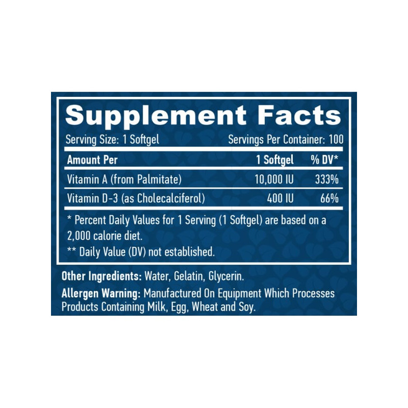 До складу однієї м'якої гелевої капсули Vitamin A&D Complex від Haya Labs входить:
