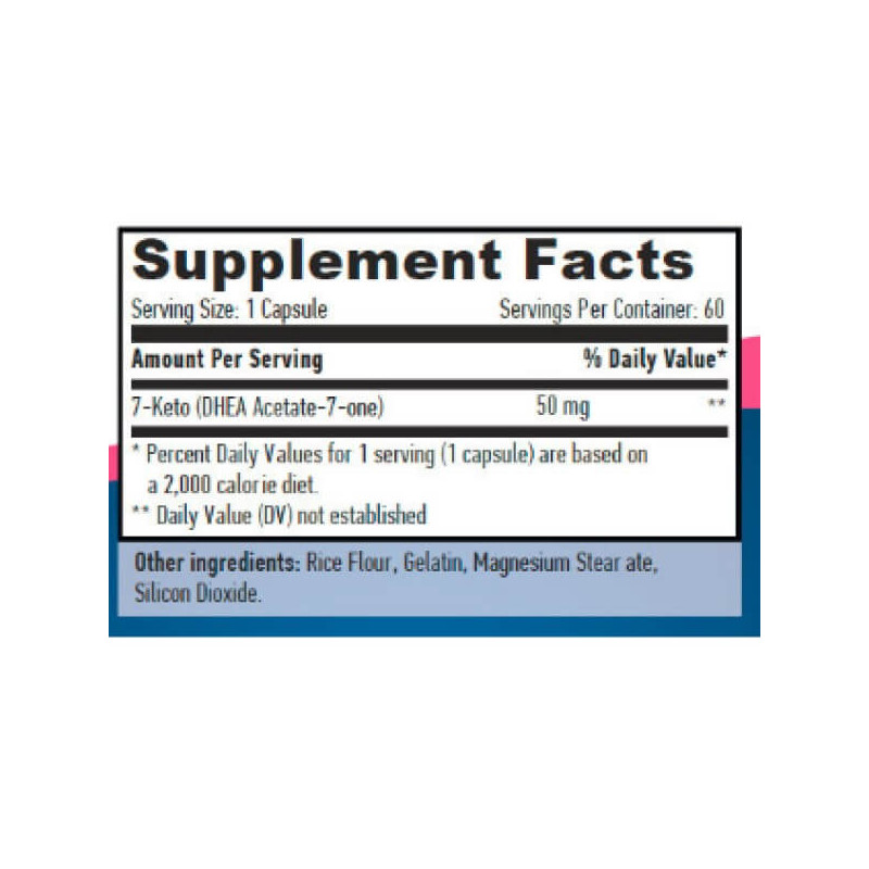 У кожній капсулі харчової добавки 7-Keto DHEA від Haya Labs міститься: