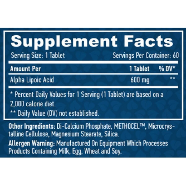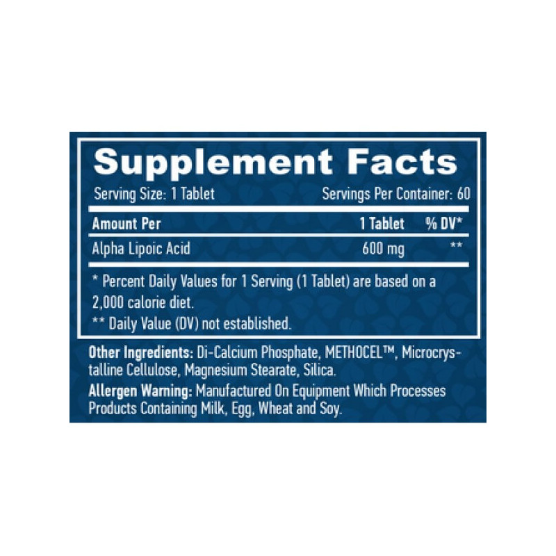 До складу кожної таблетки Alpha Lipoic Acid Time Release від Haya Labs входить: