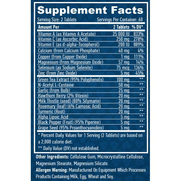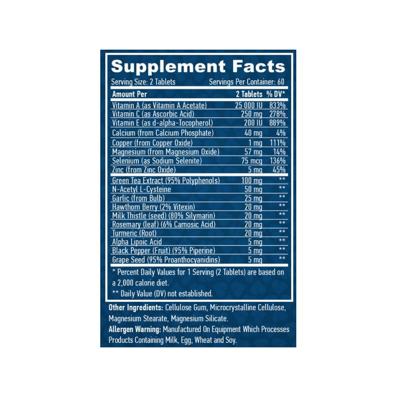 У порції Antioxidant Complex від Haya Labs з 2 таблеток міститься: