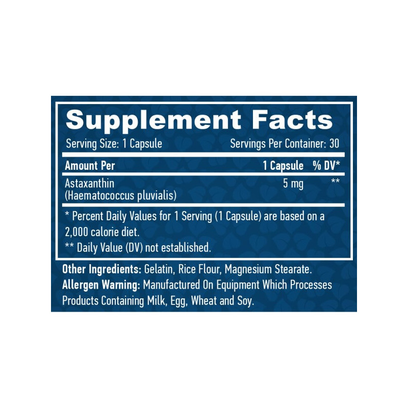 Характеристики    Astaxanthin 5 мг Haya Labs (30 капсул)