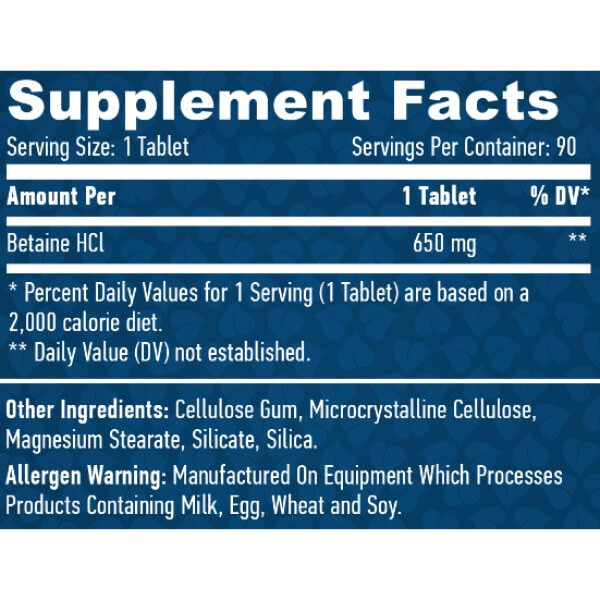 В одній таблетці Betaine HCL від Haya Labs міститься: