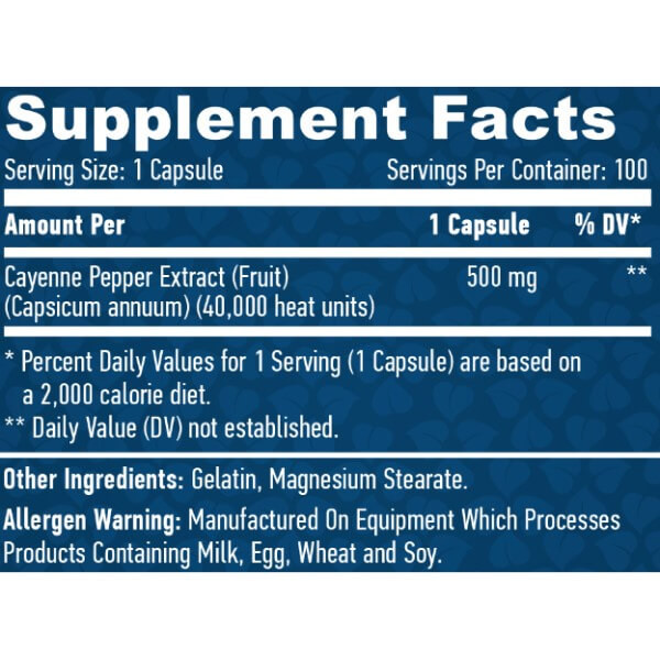 · 500 мг екстракту кайєнського перцю;
