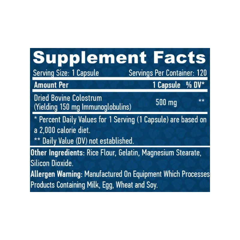 Характеристики    Colostrum 500 мг Haya Labs (120 капсул)
