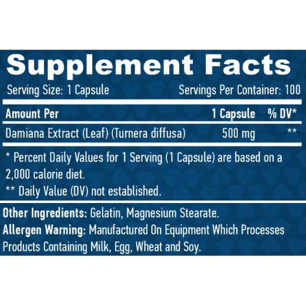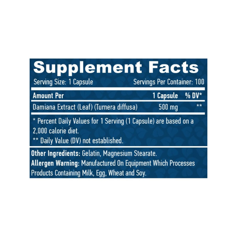 До складу кожної капсули рослинної добавки Damiana Leaf Extract від Haya Labs входить: