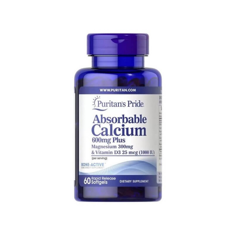 Absorbable Calcium plus Magnesium & Vitamin D від популярного бренду із США Puritan's Pride – збалансований комплекс, до якого входять абсорбований кальцій, магній та вітамін D у формі холекальциферолу. Ці нутрієнти виконують значну функцію у функціонуванні багатьох тканин, органів прокуратури та систем. І отримання їх із високоочищеної безпечної харчової добавки приносить набагато відчутніший результат, ніж вживання продуктів, багатих на дані речовини.