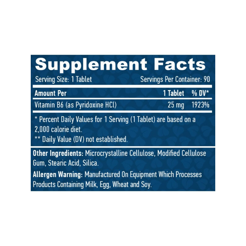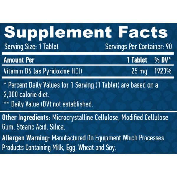 В одній таблетці Vitamin B6 від Haya Labs міститься:
