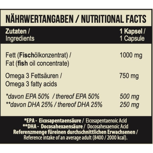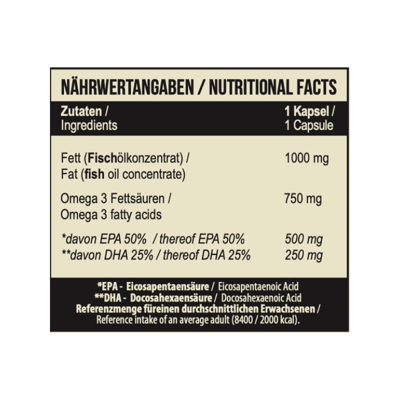 1000 мг риб'ячого жиру, у тому числі 750 мг Омега 3;
