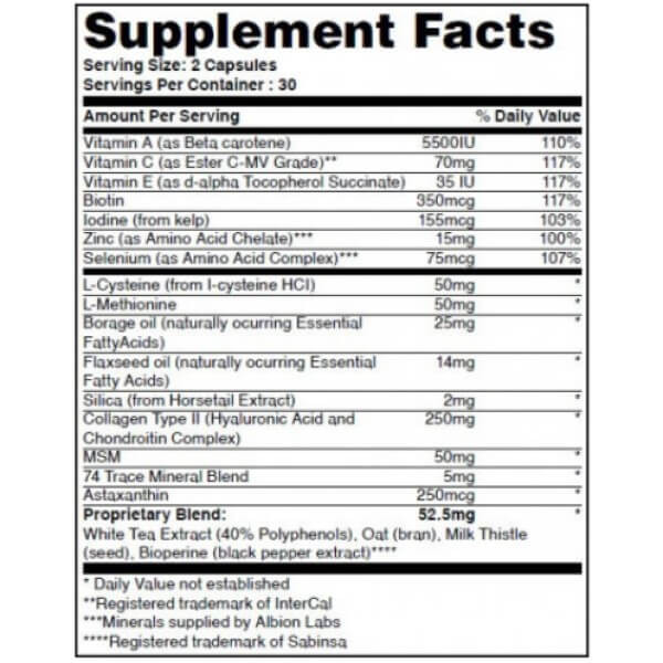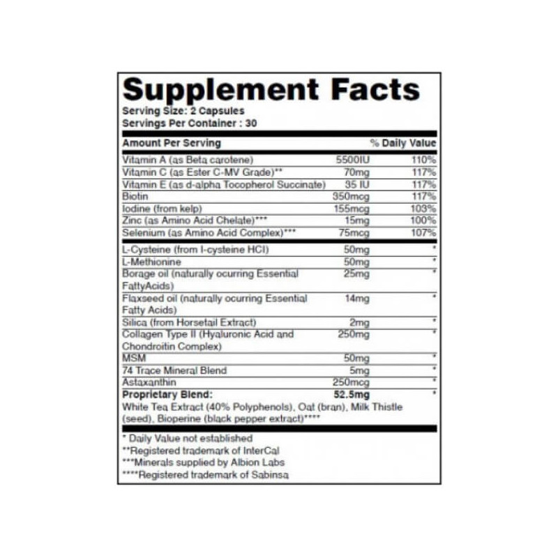 У порції біодобавки Hair, Skin and Nails від Haya Labs з 2 капсул міститься: