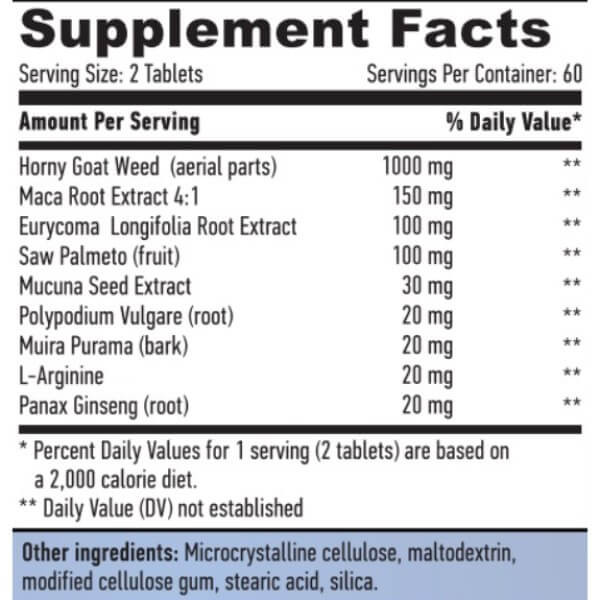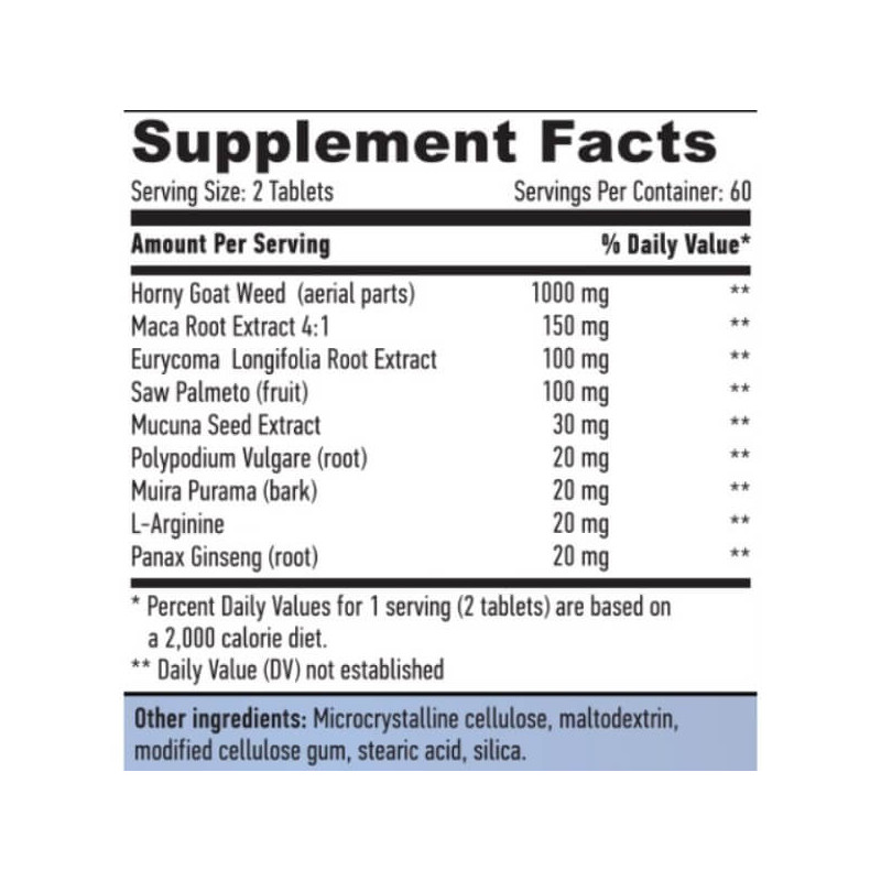 У двох таблетках біодобавки Horny Goat Weed від Haya Labs міститься: