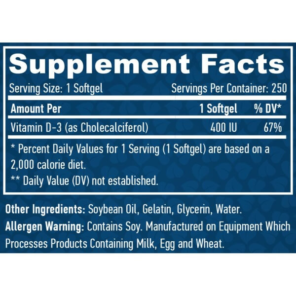 В одній капсулі Vitamin D-3 від Haya Labs міститься: