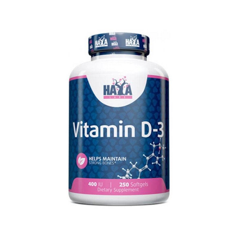 Vitamin D-3 від популярного виробника США Haya Labs – харчова добавка, активним компонентом якої є вітамін Д3 (холекальциферол). Цю органічну речовину одержують із натуральної сировини – філейних частин жирної риби північних морів.