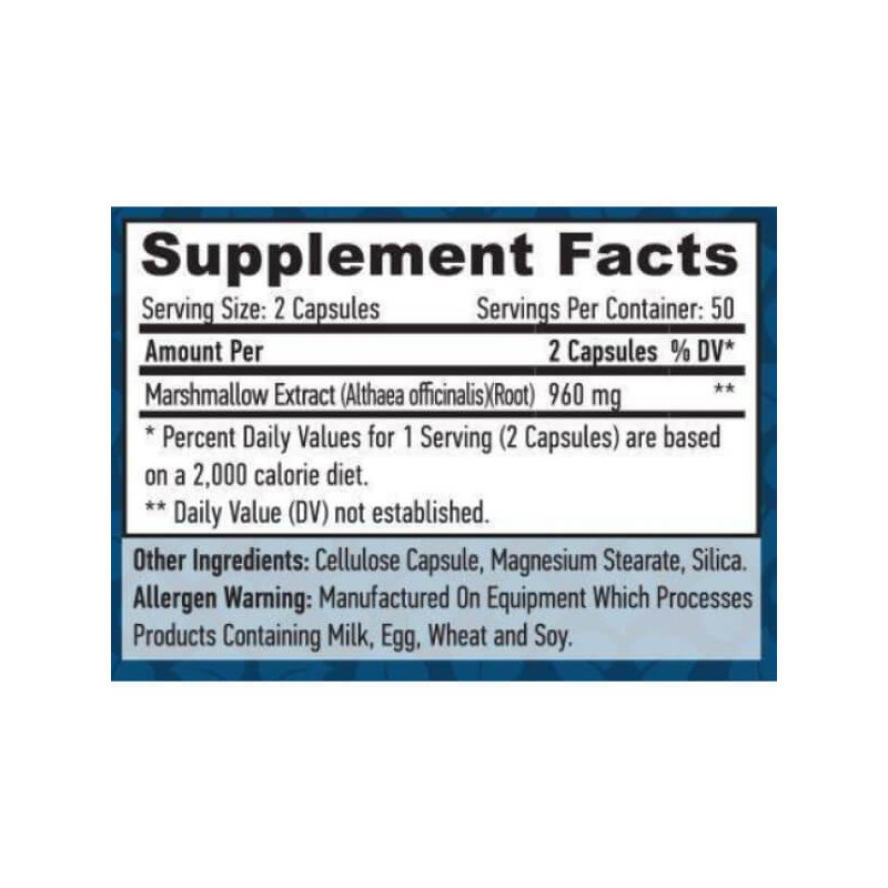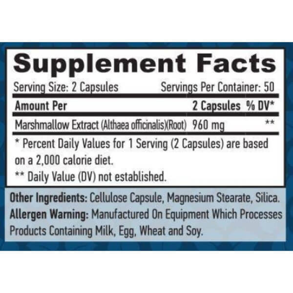 У порції біодобавки Marshmallow Root від Haya Labs з 2 капсул міститься: