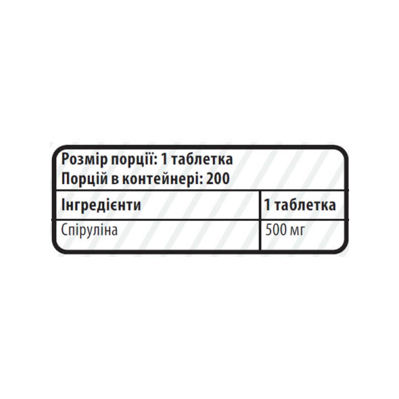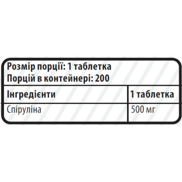 В одній таблетці продукту Spirulina від Sporter міститься: