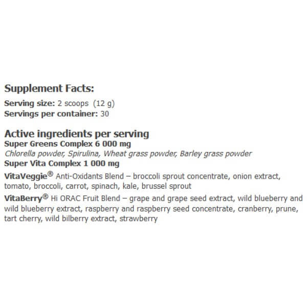 · 1 г суміші антиоксидантів Super Vita Complex, у тому числі, VitaVeggie та VitaBerry;