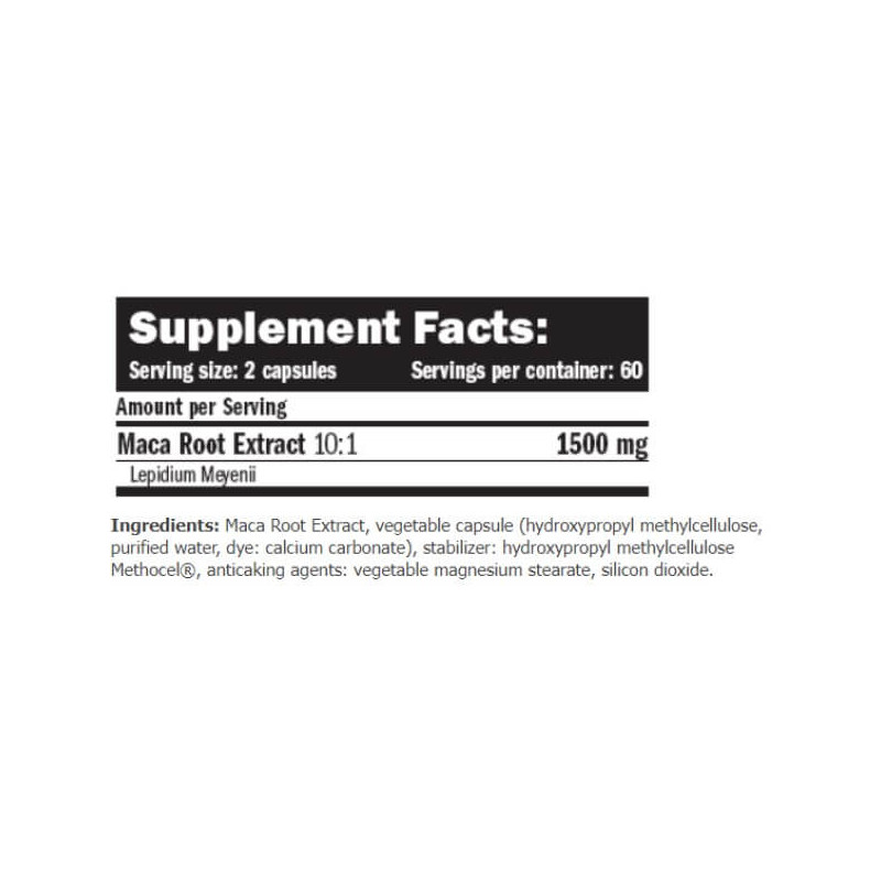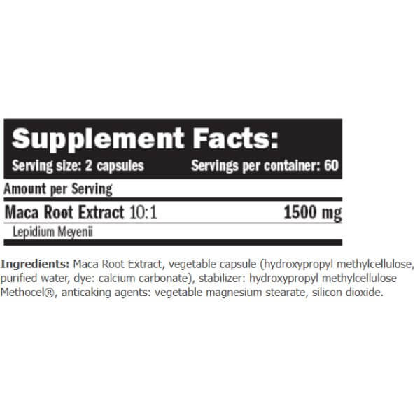 У порції Peruvian Maca від Amix із двох капсул міститься: