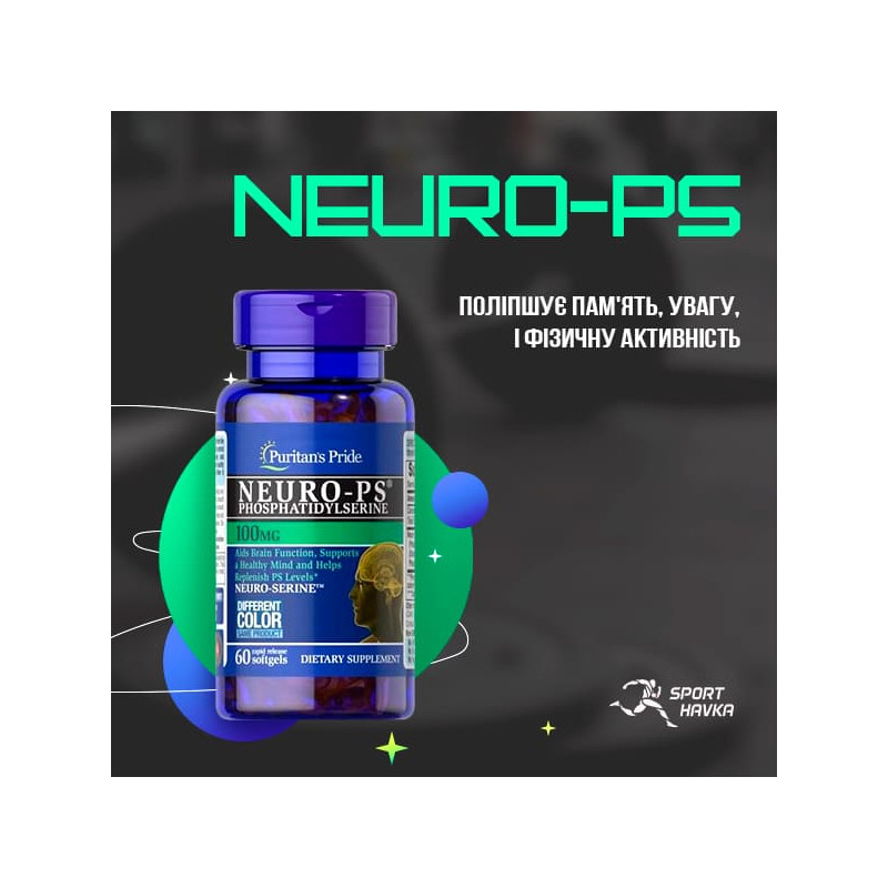 Neuro-PS – харчова добавка-нейростимулятор, виготовлена відомим американським брендом Puritan's Pride. Її дія спрямована на оптимізацію найвищої нервової діяльності людини. Для цього у складі продукту є активний компонент фосфатидилсерин – фосфорорганічна сполука, яка є невід'ємною складовою внутрішнього шару мембран клітин.