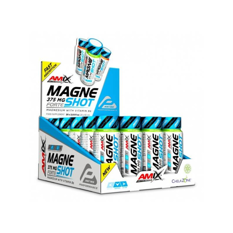 MagneShot Forte від популярного бренду із Великобританії Amix – мінеральна добавка, основним інгредієнтом якої є магній. Він представлений в оптимізованій формі міксу бісгліцинату та цитрату. У такому вигляді мікроелемент засвоюється на 30% інтенсивніше, ніж чистий магній. А ще для більшого підвищення засвоюваності він посилений вітаміном В6.