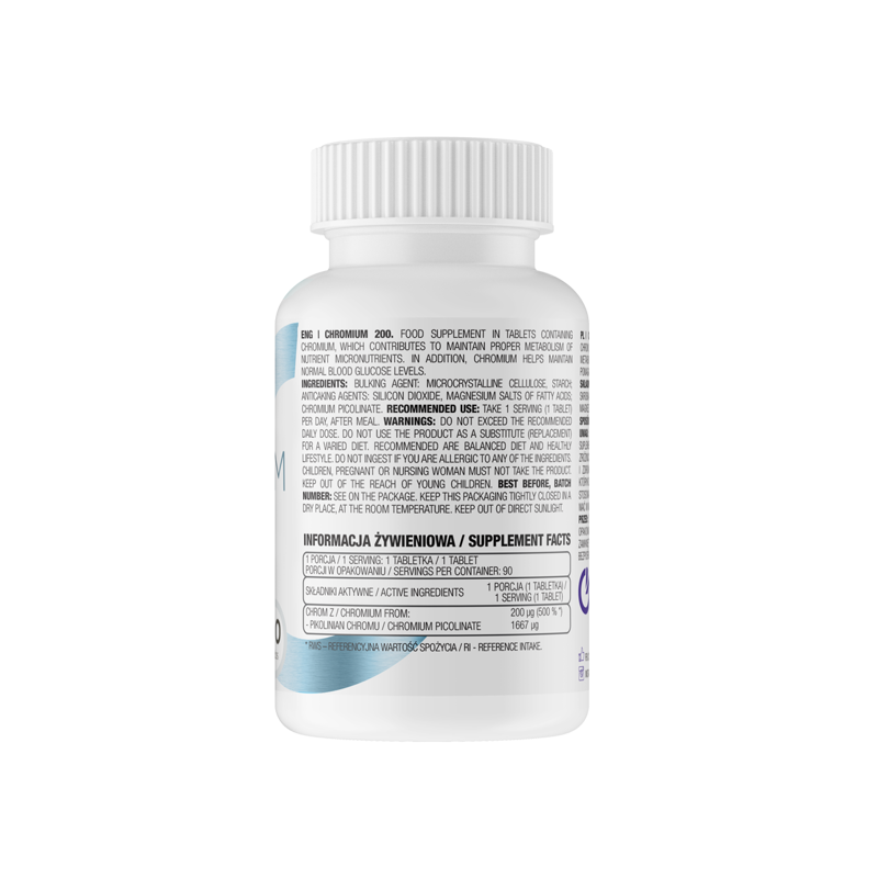 Склад біодобавки (в 1 таблетці): піколіат хрому (1667 мкг), хром (200 мкг), наповнювачі.