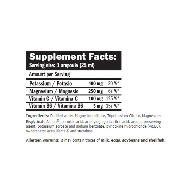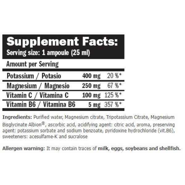 В одній ампулі комплексу Magnesium Liquid Plus від Amix об'ємом 25 мл міститься: