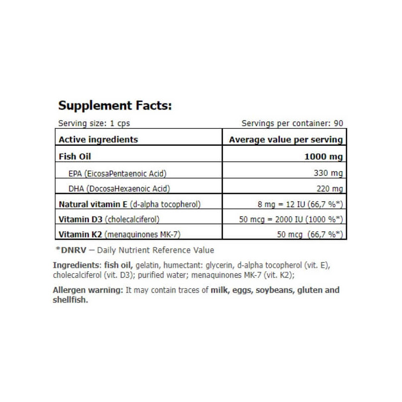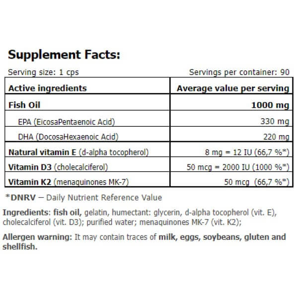 До складу кожної капсули дієтичної добавки Omega3 Forte + від Amix входить: