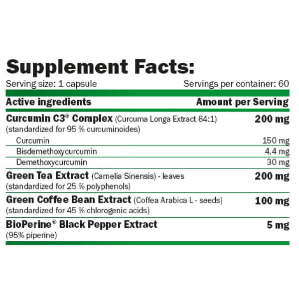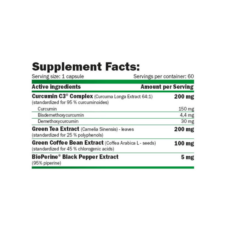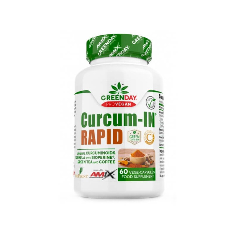 Curcum-IN Rapid – один із найдостойніших представників лінійки продуктів Greenday британського бренду Amix. Це – натуральна комплексна біодобавка, у складі якої є унікальні запатентовані формули Curcumin C3 Complex з трьома куркуміноїдами, BioPerine з чорним перцем, а також екстракти кави та зеленого чаю.
