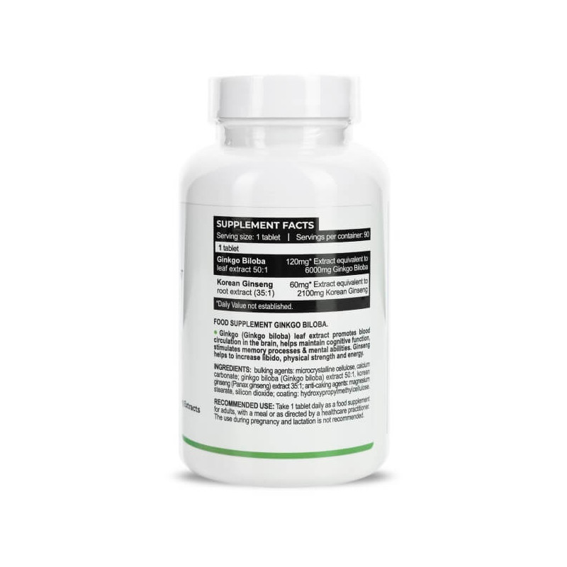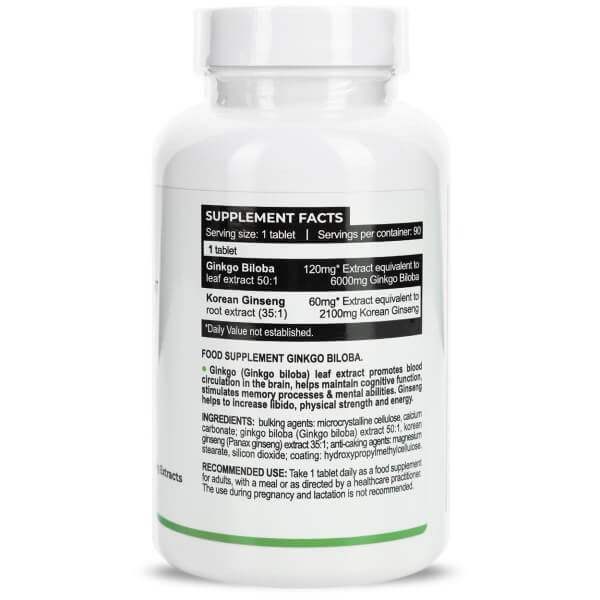 Ginkgo Biloba + Ginseng Extracts від відомого угорського бренду Progress Nutrition – безпечний та ефективний продукт рослинного походження, до складу якого входять екстракти гінкго білоба та женьшеню. Обидві ці культури здавна відомі своїми цілющими властивостями. Поєднавши їх один з одним, виробник лише посилив позитивний вплив біодобавки на організм та розширив сферу її впливу. А обравши таблетовану форму, зробив прийом препарату максимально комфортним та необтяжливим.