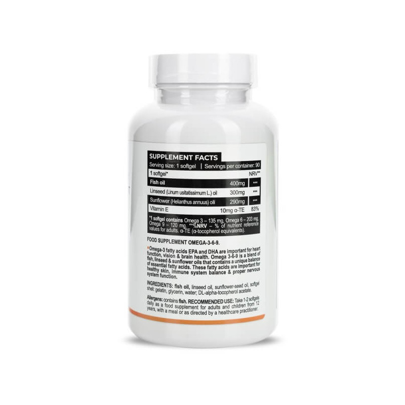 Omega 3-6-9 від одного з найпопулярніших брендів Європи Progress Nutrition – унікальна харчова добавка, до складу якої входить одразу кілька поліненасичених жирних кислот класу Омега. Це докозагексаєнова, ейкозапентаєнова, лінолева та олеїнова кислоти, які позначаються як Омега 3, 6 і 9. Вони отримані з високоочищеного натурального риб'ячого жиру преміум класу і посилені вітаміном Е. Така біодобавка зможе принести вам максимум користі без негативних побічних реакцій.
