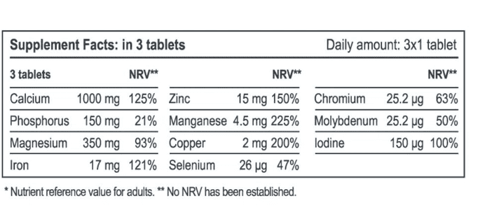 Рекомендації щодо застосування: Приймайте по 3 таблетки щодня разом із склянкою води.