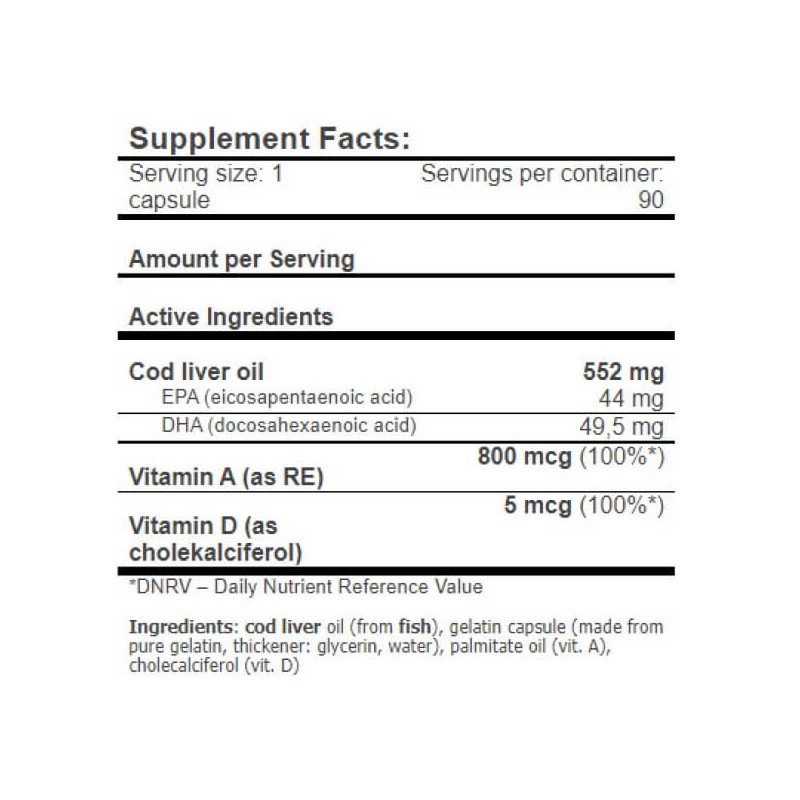 До складу кожної софтгель-капсули біодобавки Cod Liver Oil входить: