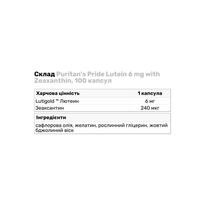 Склад добавки: люцетін, зеаксантин, гліцерин рослинного походження, олія сафлору, віск бджолиний.